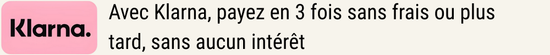 Oui, grâce à notre partenariat avec Klarna, vous pouvez régler votre commande en 3 fois sans frais.